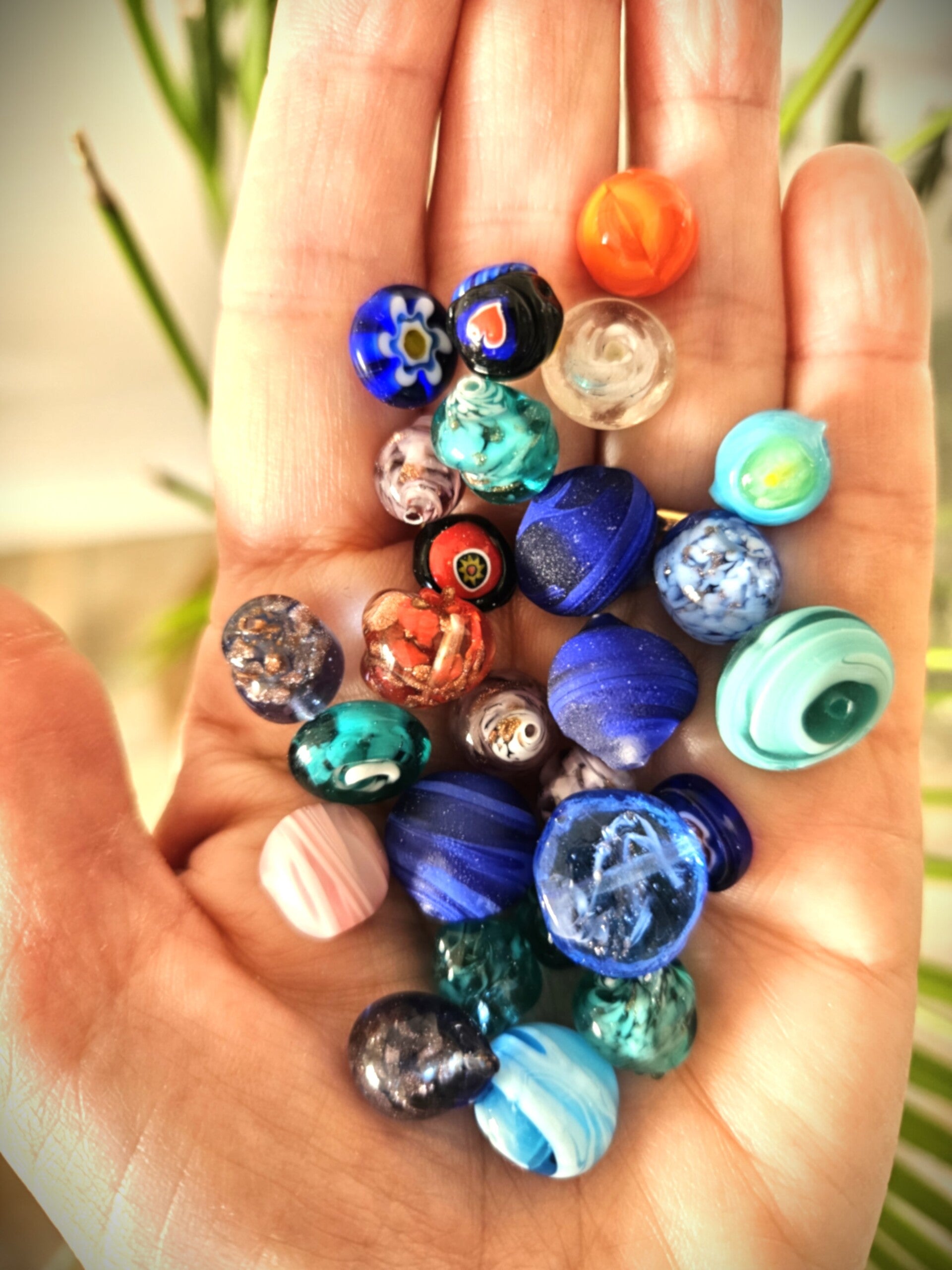 Explorez la diversité de mes créations faites main, chacune racontant une histoire. J'utilise des perles en verre, des pierres semi-précieuses, de l'acier inoxydable, du plaqué or et du laiton pour concevoir des bijoux qui célèbrent votre individualité.