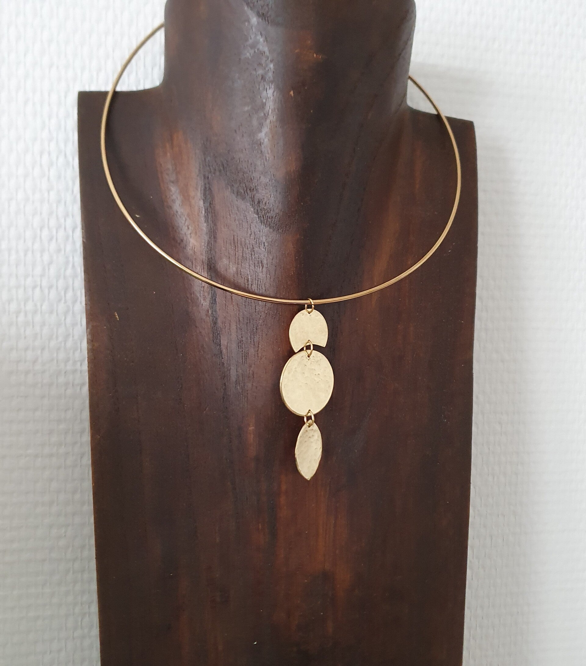 Ce collier tour de cou jonc de 14 cm diamètre intérieur est en acier inoxydable or sans fermoir.