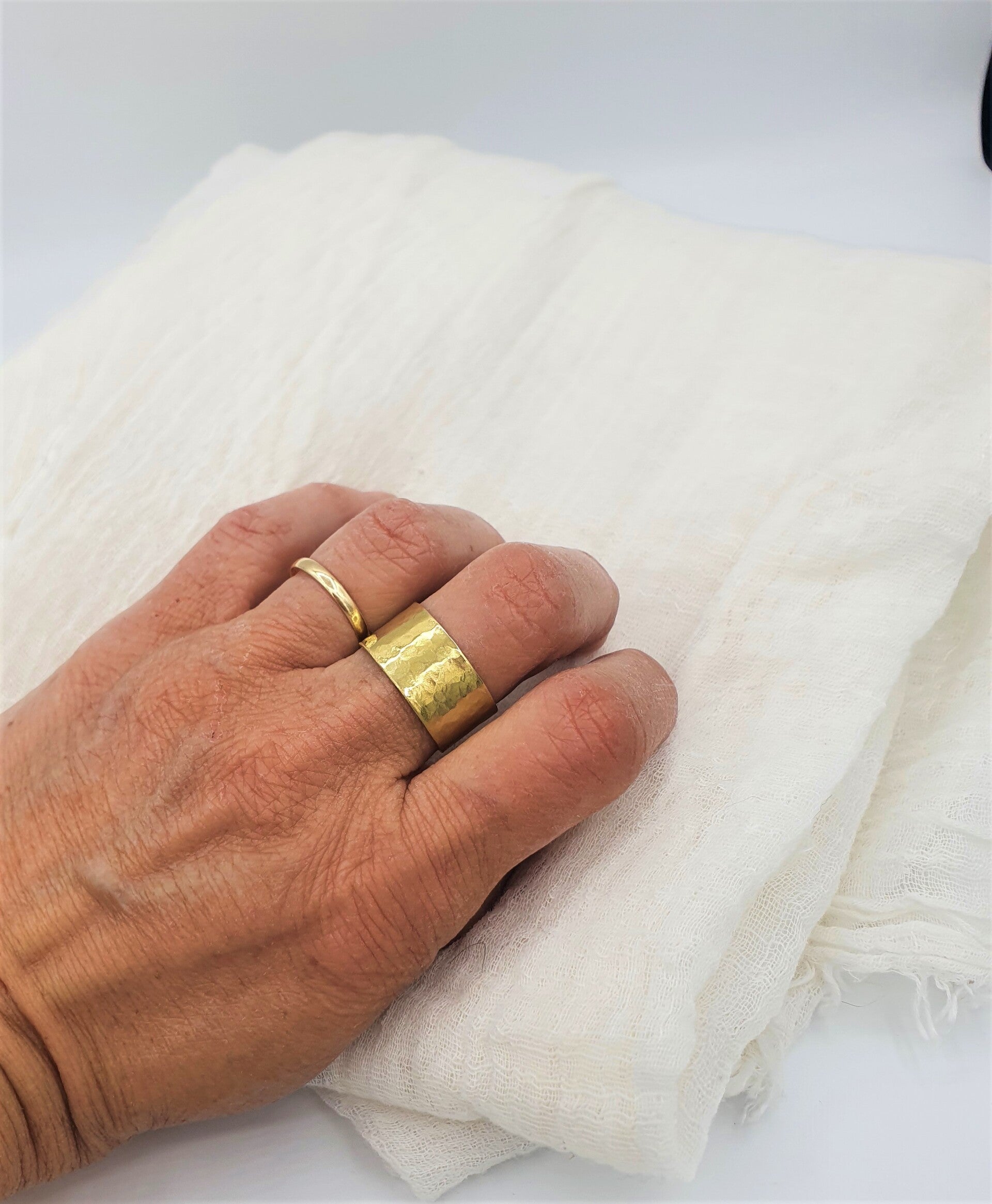 Cette bague est réglable, 1 cm de large , martelée ou polie.