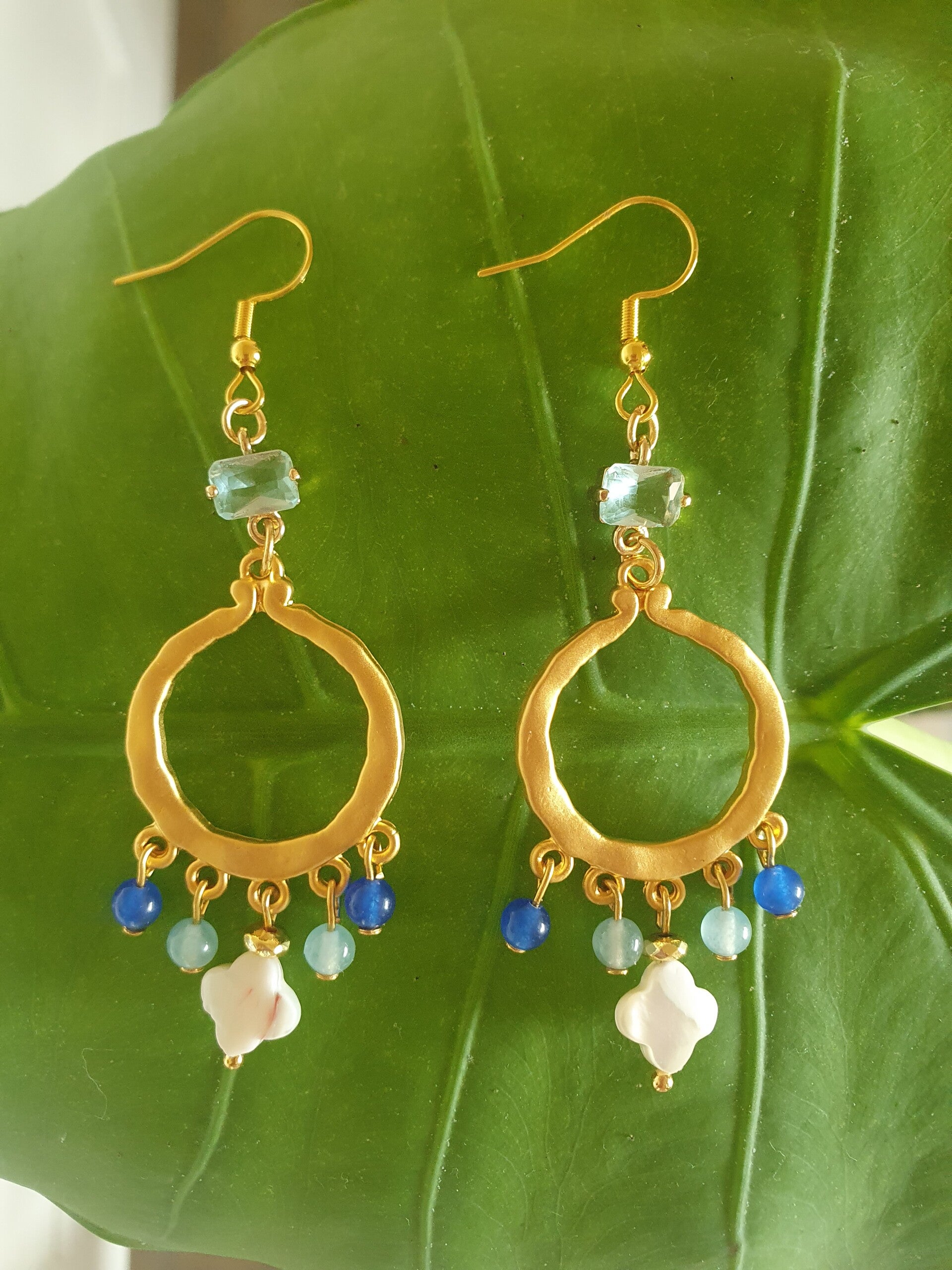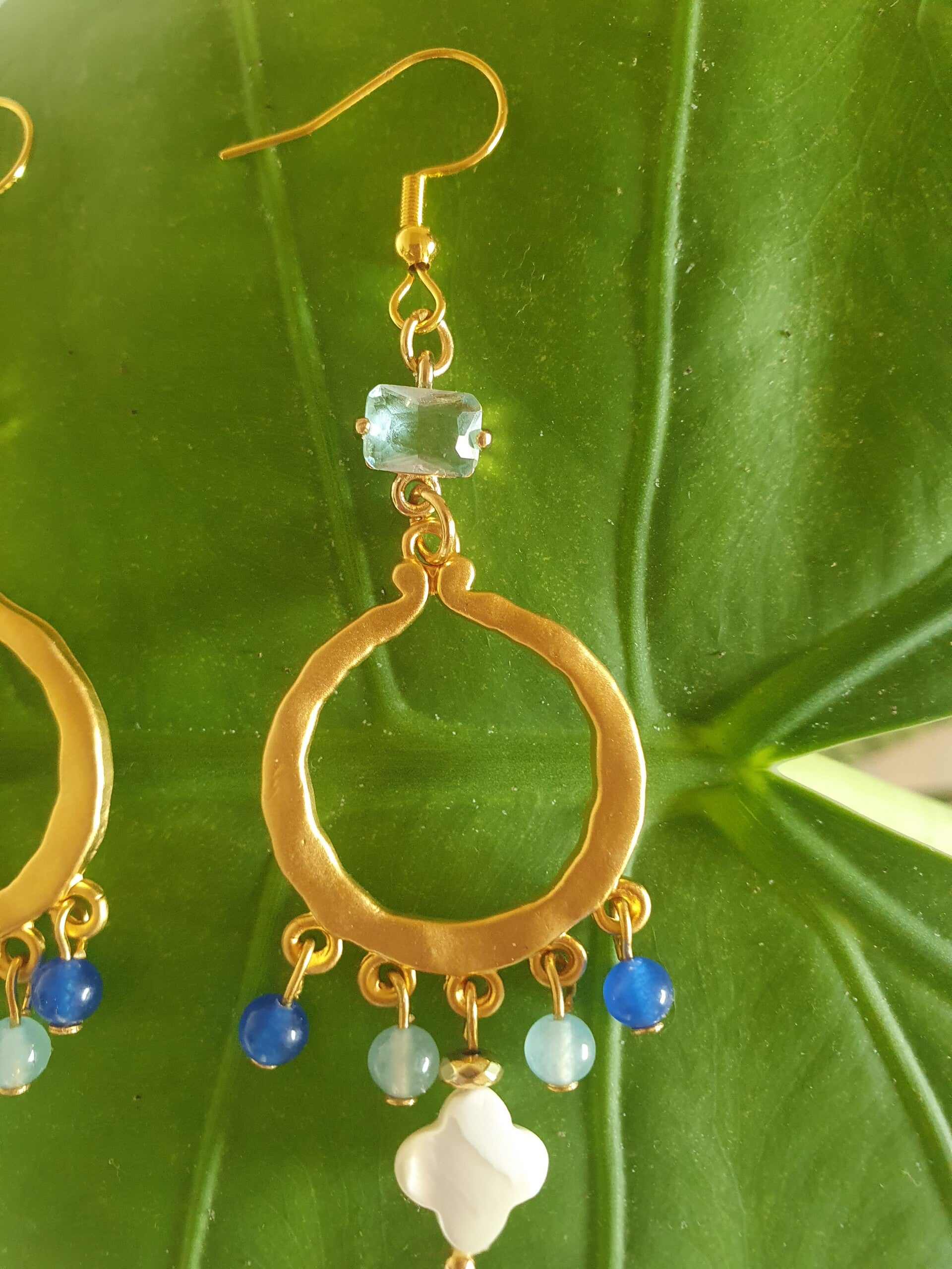 Boucles d'oreilles plaqué or aux pierres semi-précieuses