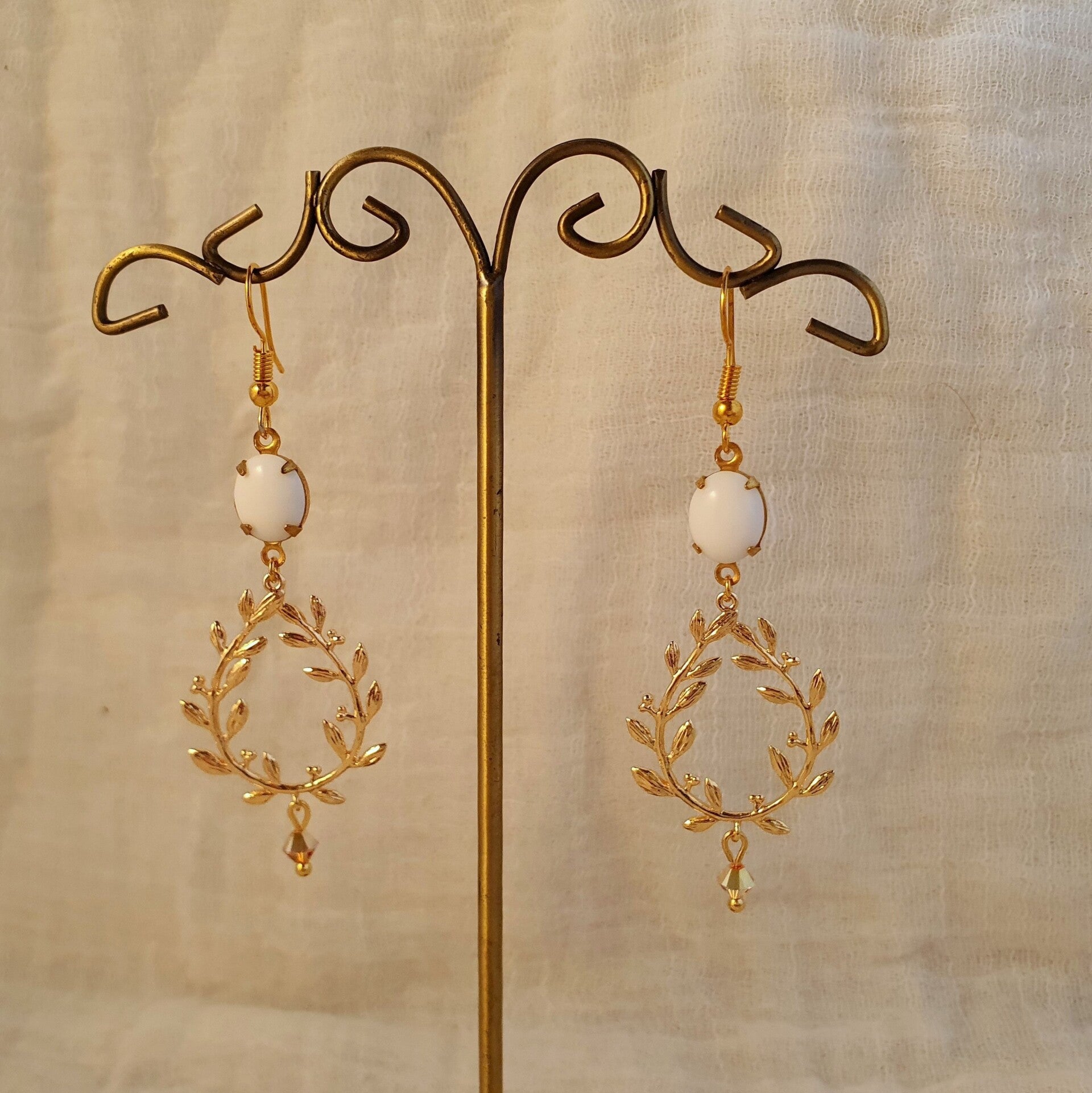 Boucles d'oreilles romantiques aux couronnes de laurier or et verre